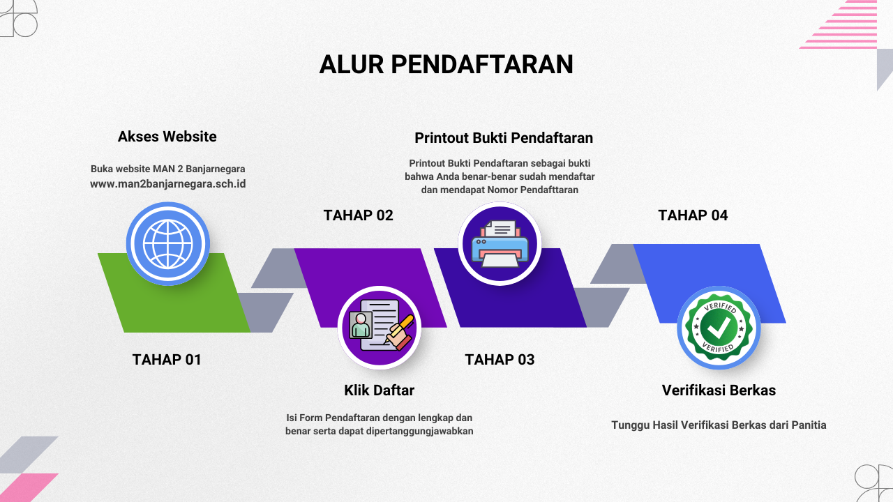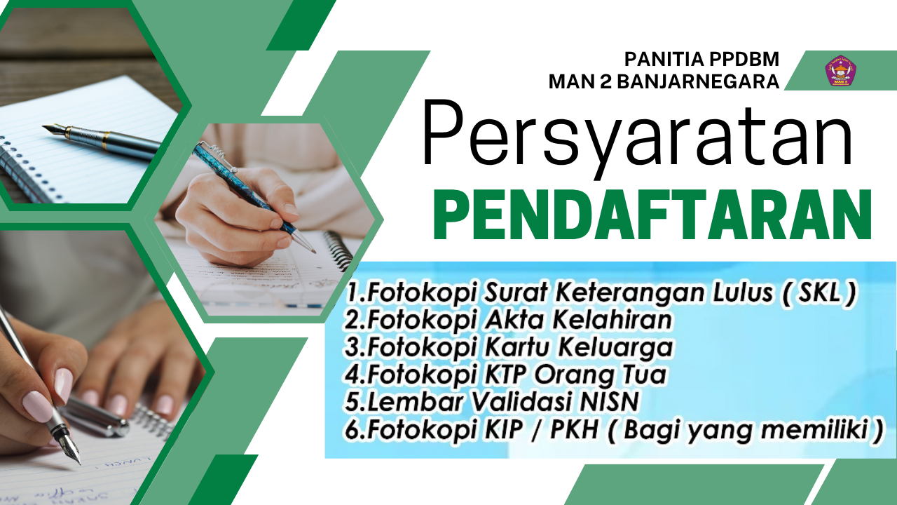 MAN 2 BANJARNEGARA melayani Penerimaan Peserta Didik Baru (PPDB) secara online dengan harapan proses PPDB dapat berjalan cepat dan bisa dilakukan dimanapun dan kapanpun selama sesi PPDB Online dibuka.
